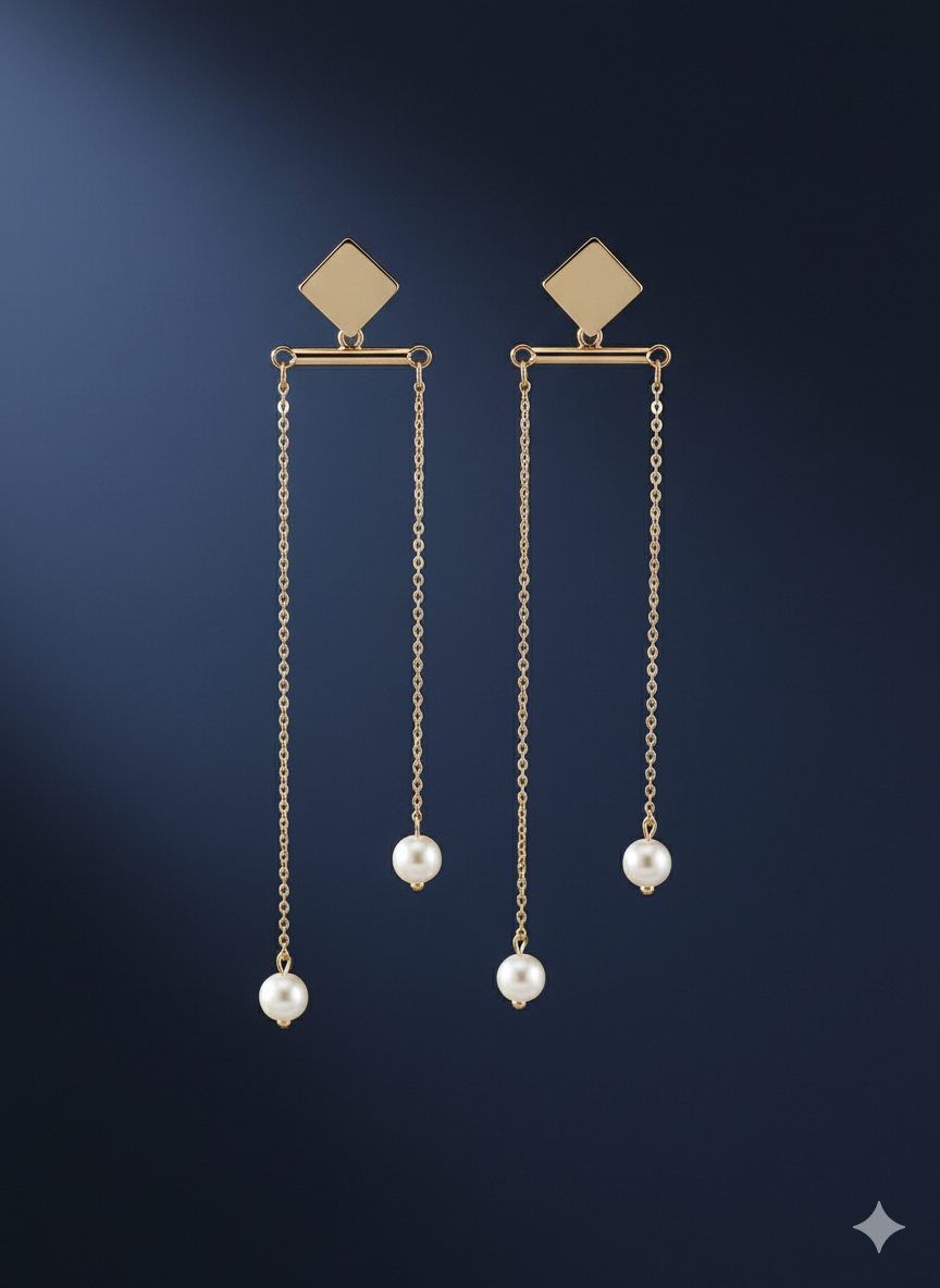 Save10.5%Save ₹21.00Only₹179.00₹200.00Original price was: ₹200.00.₹179.00Current price is: ₹179.00.Modern Geometric Gold Pearl Drop Earrings – Long Chain Dangle Statement