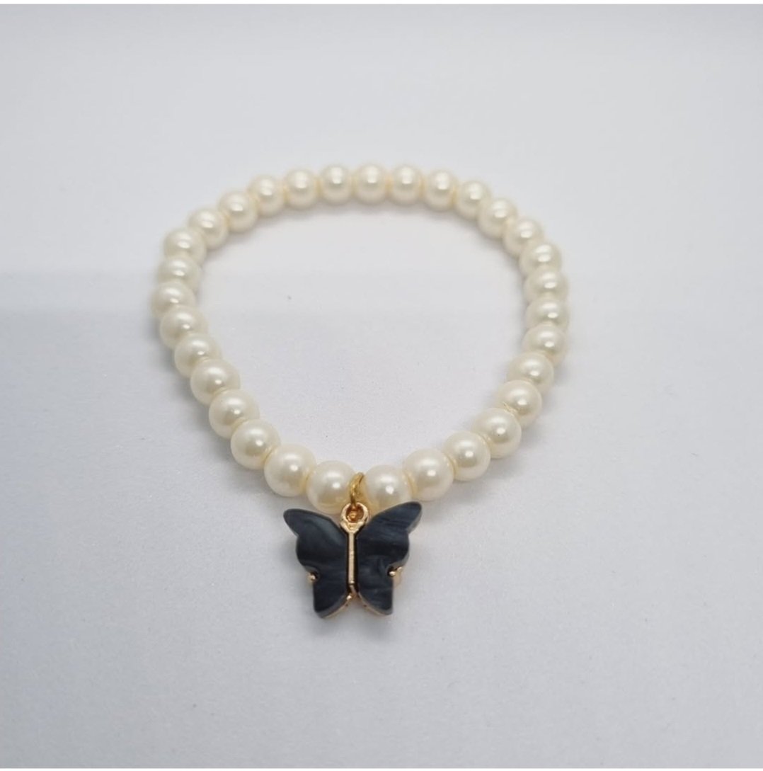 Embrace classic elegance with a modern, symbolic twist with the White Pearl & Black Butterfly Charm Bracelet. This piece is a beautiful combination of timeless grace and contemporary style, making it a versatile addition to any jewelry wardrobe.