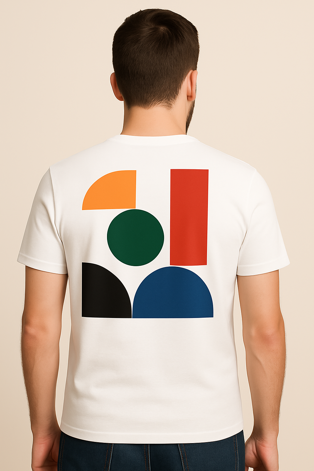 The front showcases a unique, copyright-free geometric abstract design, making it stand out as a statement piece while staying minimal and versatile. Its clean design pairs effortlessly with jeans, joggers, or shorts, giving you a stylish urban vibe wherever you go.